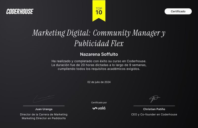 Acabo de finalizar el curso de Community Manager de Guada Comunicación y estoy emocionada por compartirlo. Aprendí a armar briefs de marca, planificar el contenido para las redes sociales, crear contenido que conecte con mi audiencia, y descubrí herramientas geniales para organizarme mejor.También me brindó tips para destacar en Instagram y TikTok.Un curso súper completo […]
